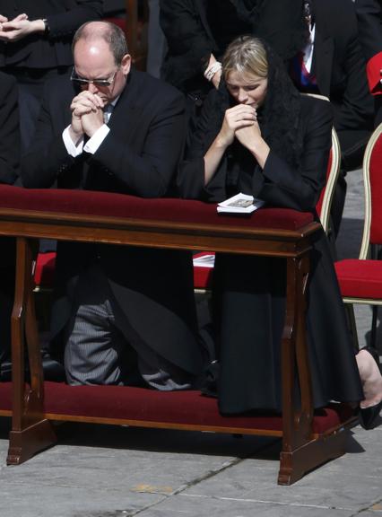 Príncipe Albert II de Mônaco e Princesa Charlene de véu na Santa Missa