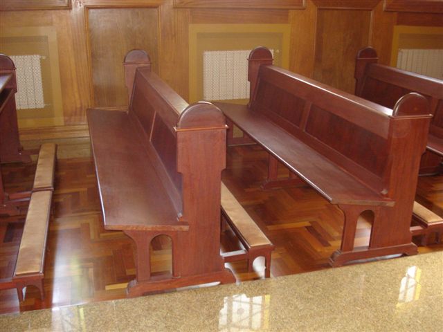 Banco de Igreja com local apropriado para ajoelhar-se durante a Santa Missa e para rezar